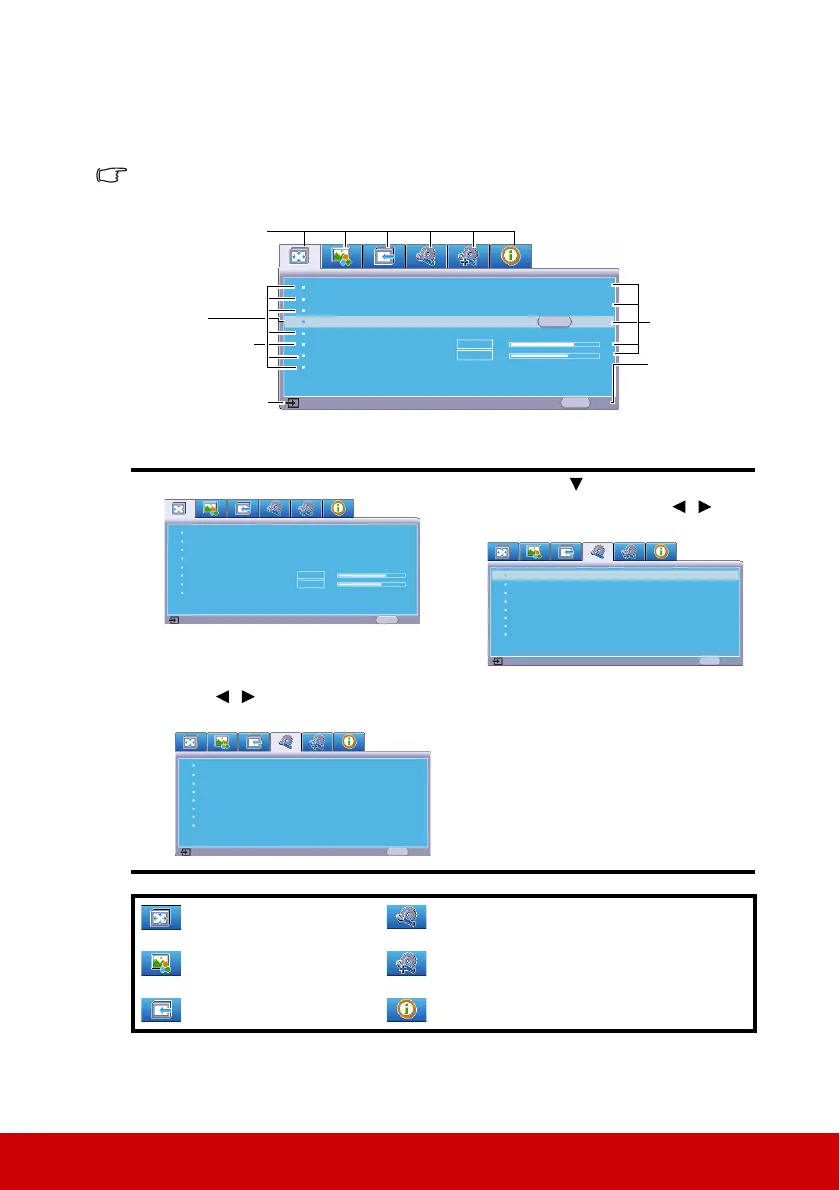 The projector is equipped with On-Screen Display (OSD) menus for making various