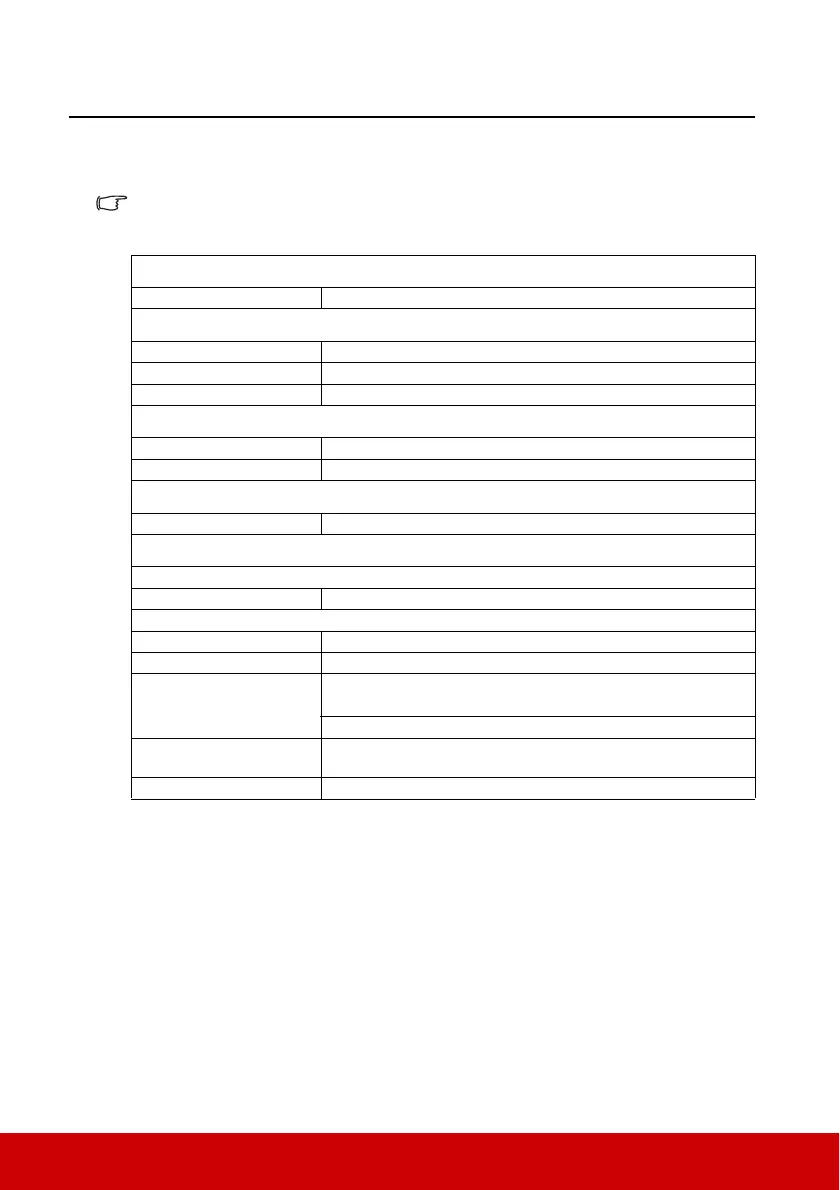 Projector specifications