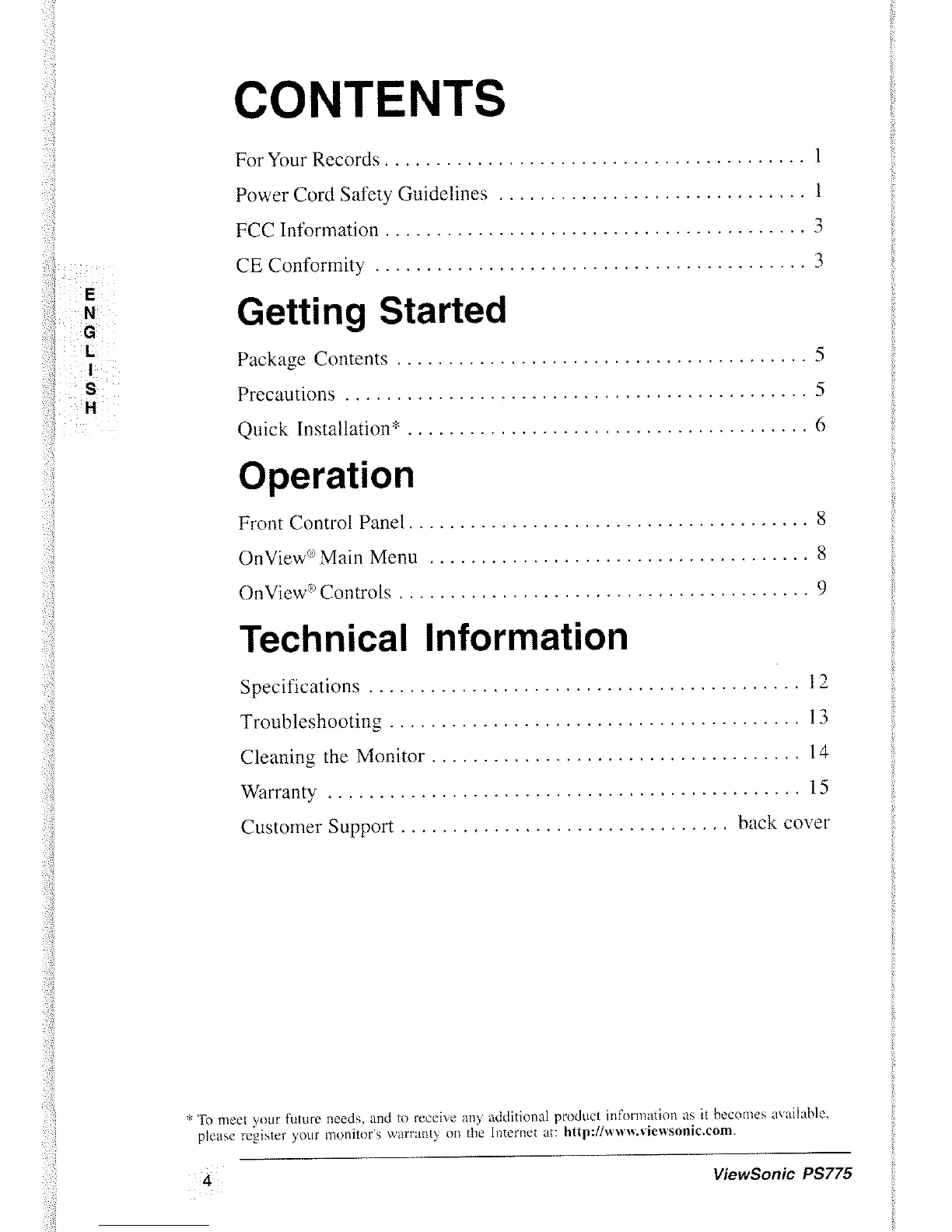 ViewSonic PS775 - Getting Started; Package Contents; Precautions