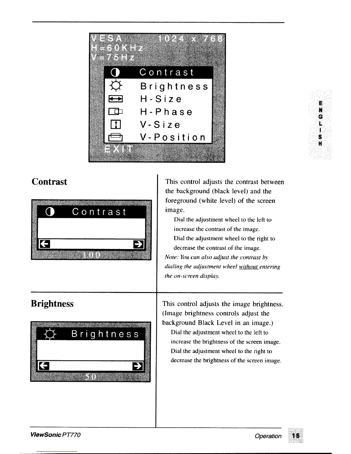ViewSonic PT770 - Contrast; Brightness