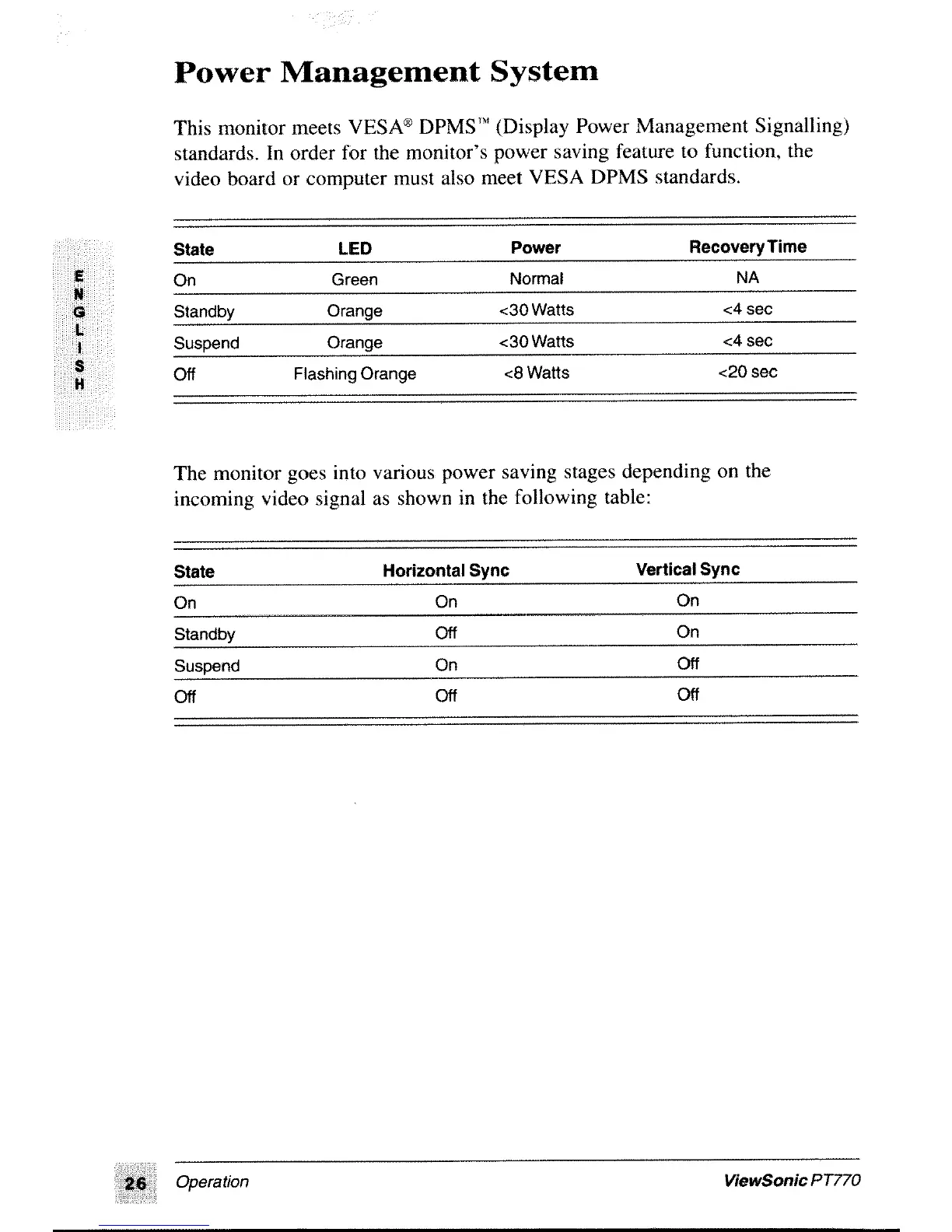 ViewSonic PT770 - Power Management System