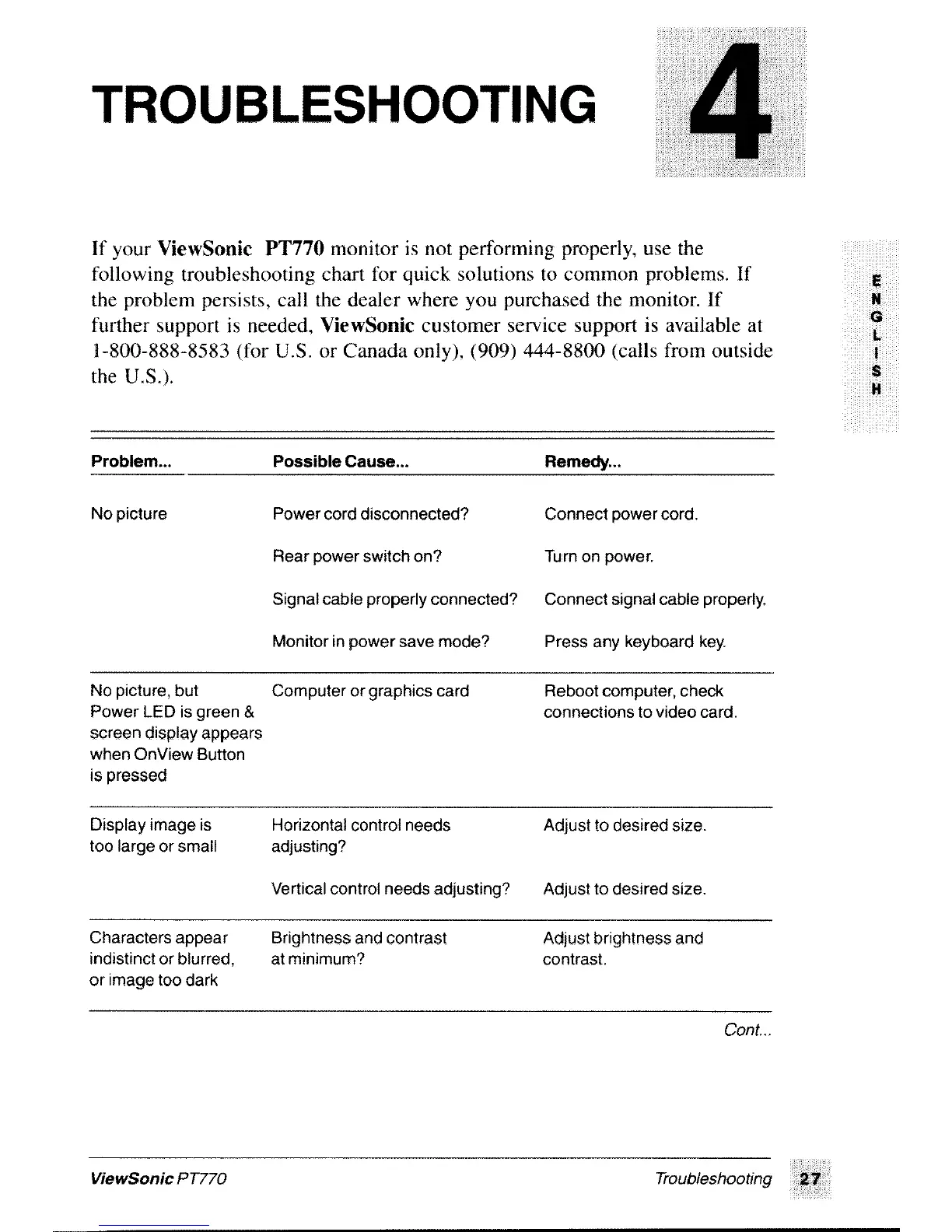 ViewSonic PT770 - Troubleshooting