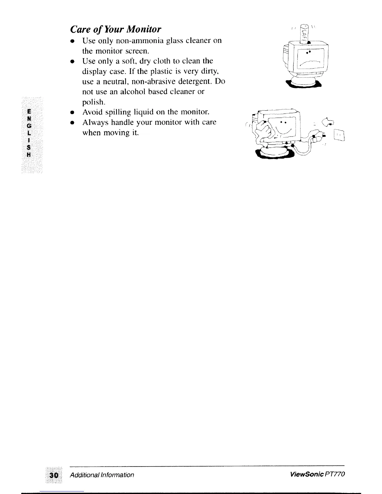 ViewSonic PT770 - Safety Tips; Care of Your Monitor
