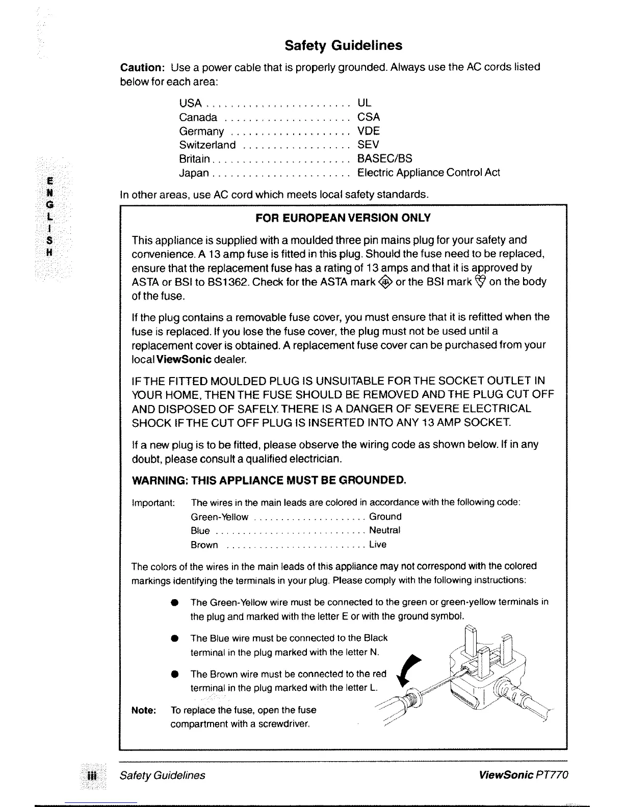 ViewSonic PT770 - Safety Guidelines