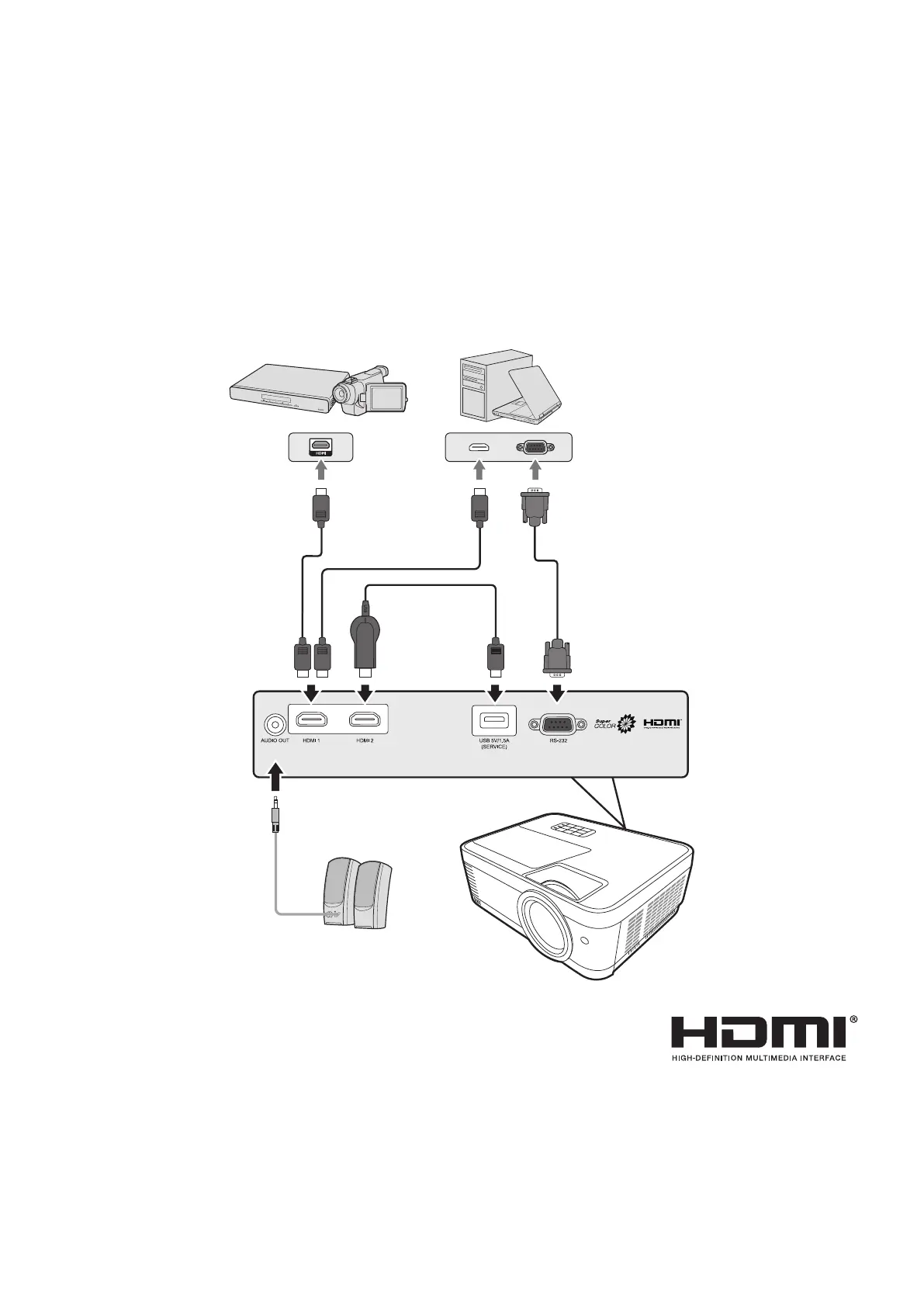 speakers to the AUDIO OUT port of the projector.