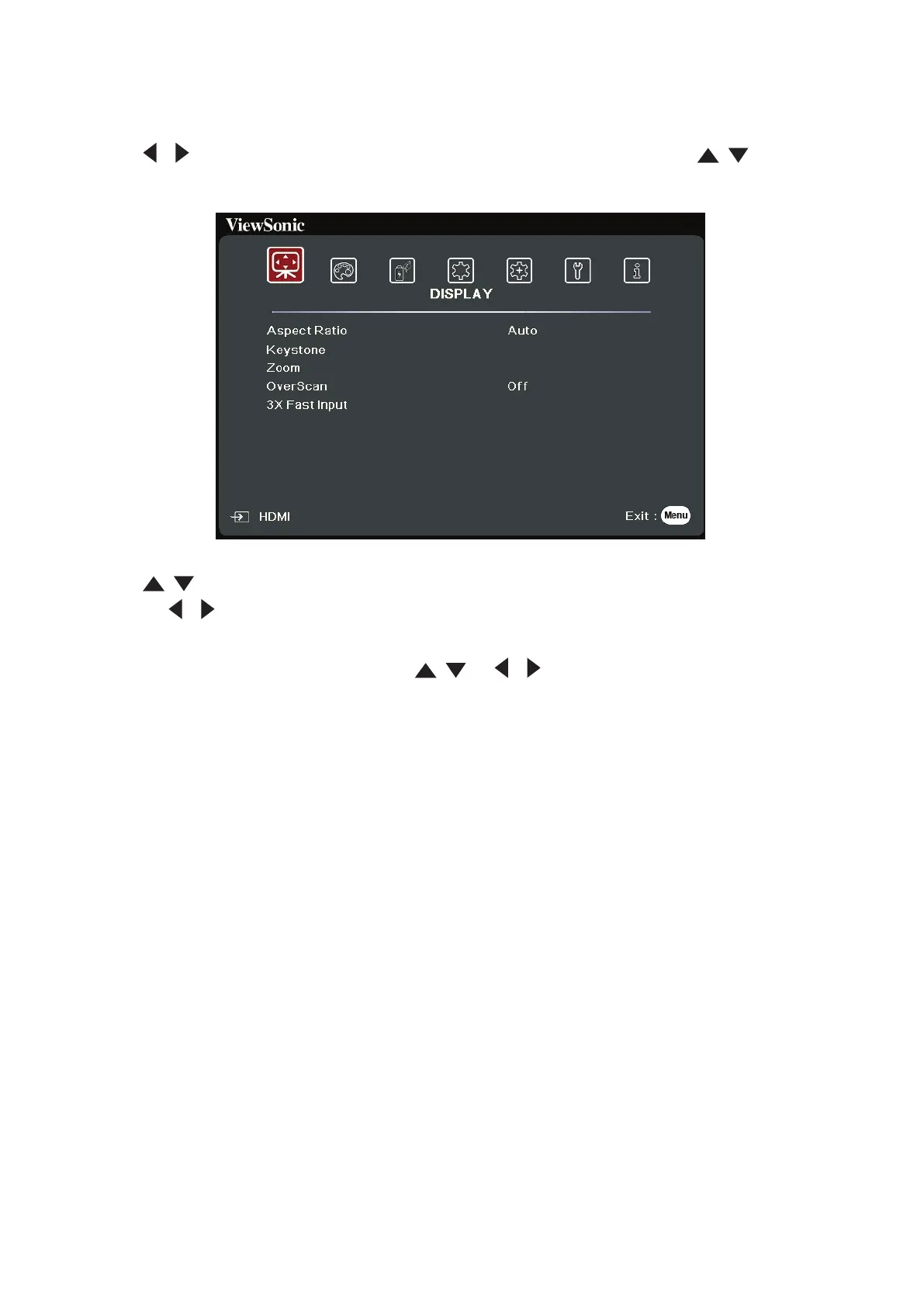 / to select the DISPLAY menu. Then press Enter or use / to access