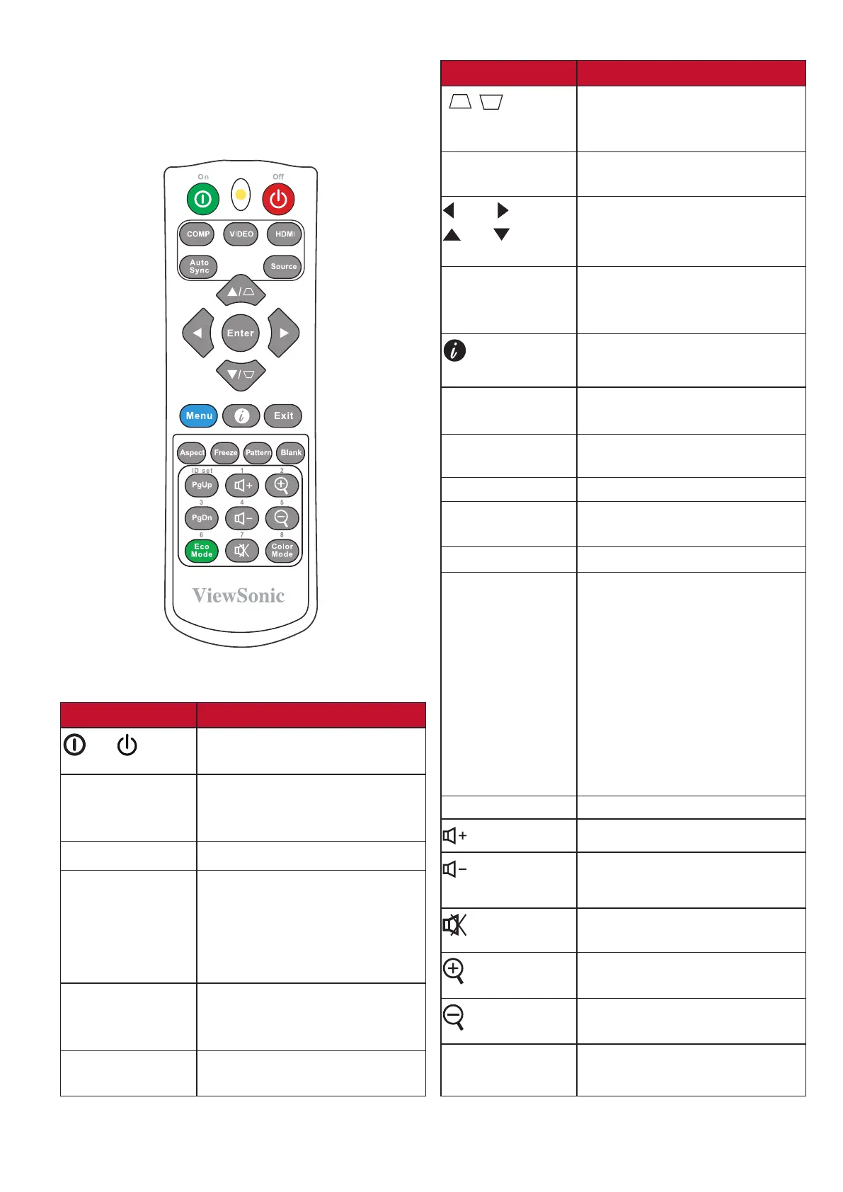 Freeze Freezes the projected image.