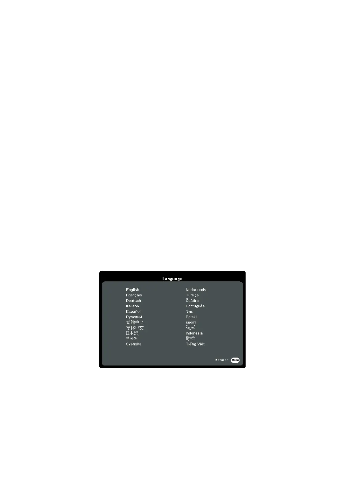 If the projector is activated for the first time, select your OSD language following