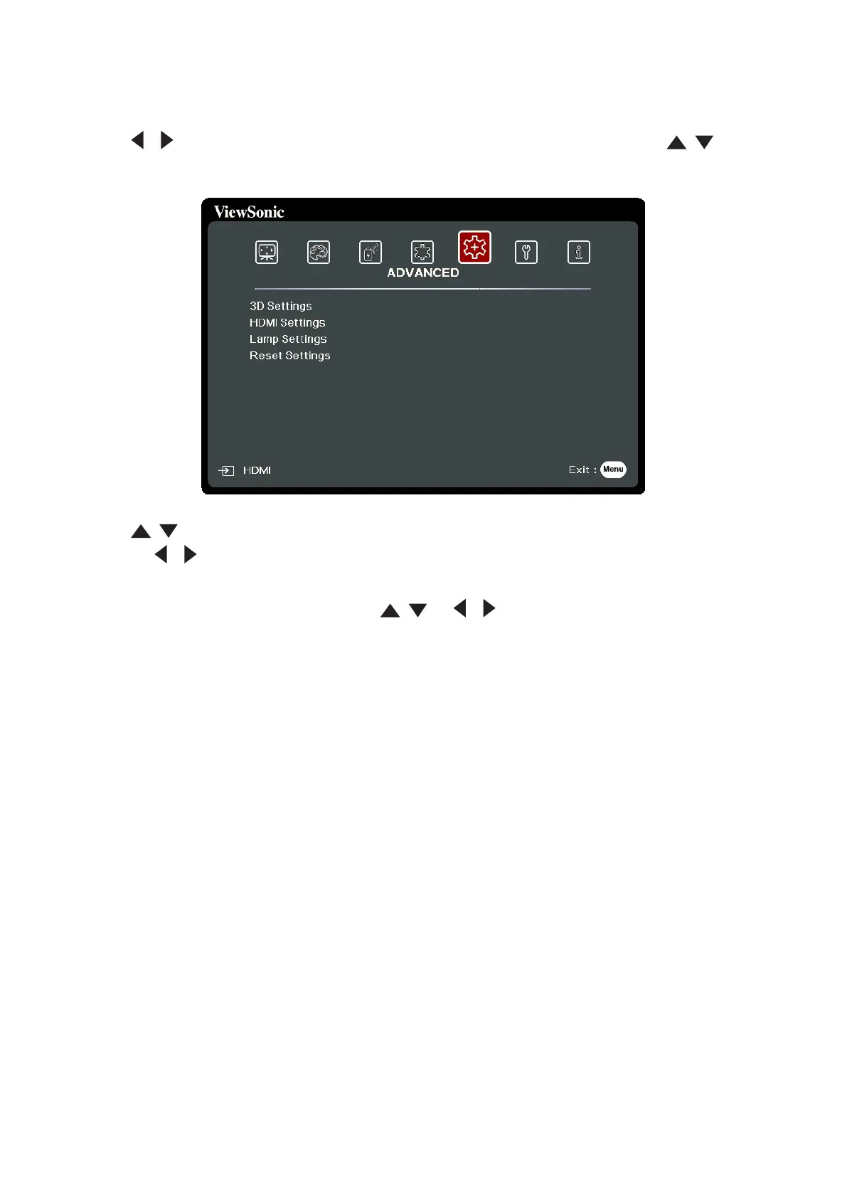 2. Press / to select the ADVANCED menu. Then press Enter or use / to