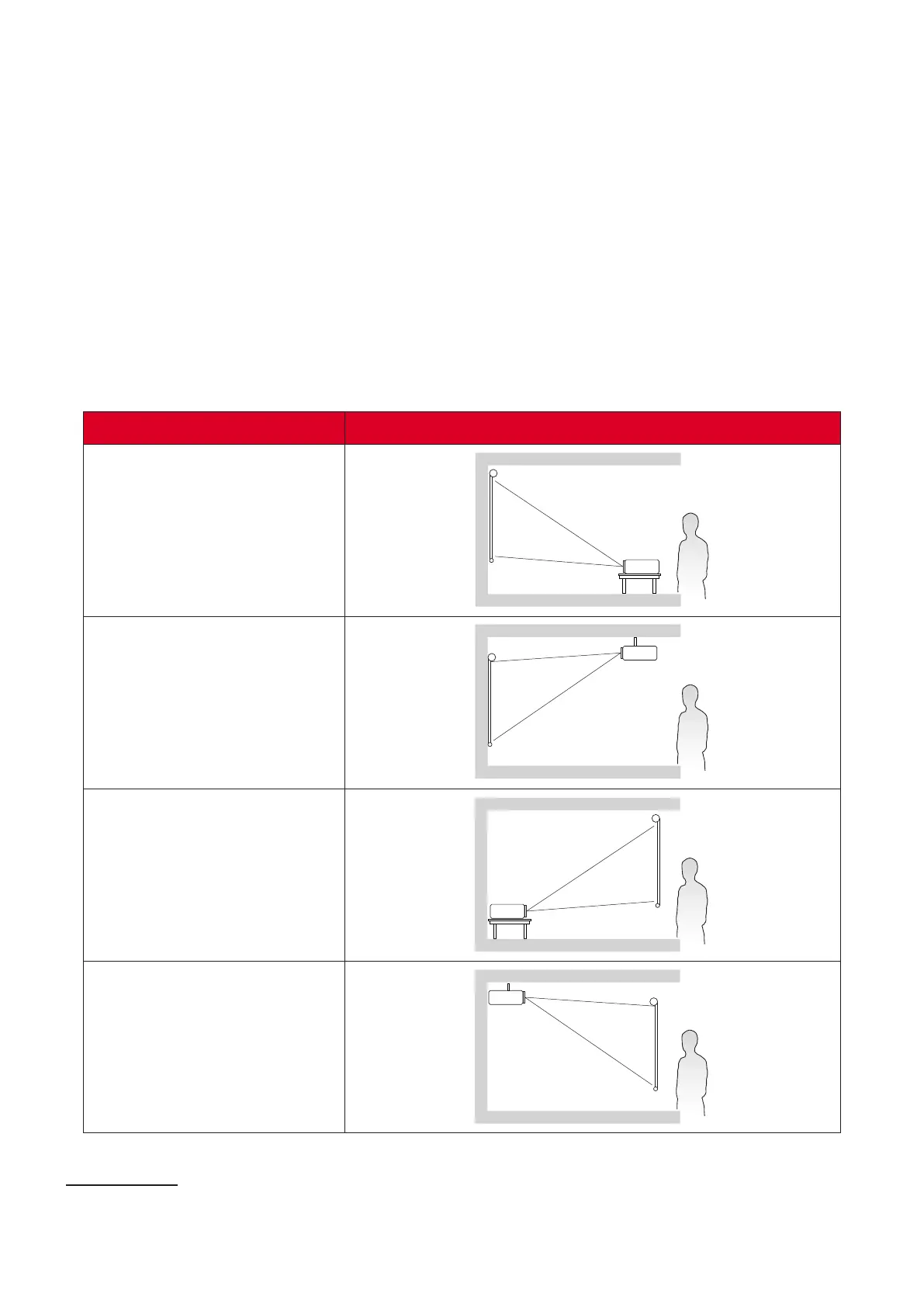 The projector is designed to be installed in one of the following locations:
