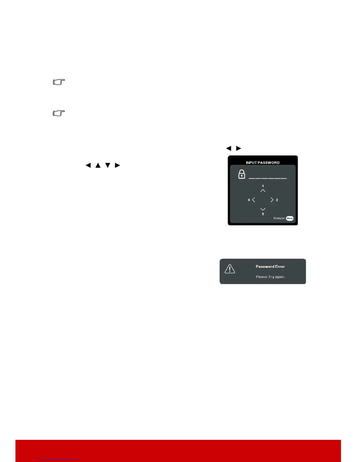 the projector. If you enter the wrong password, the