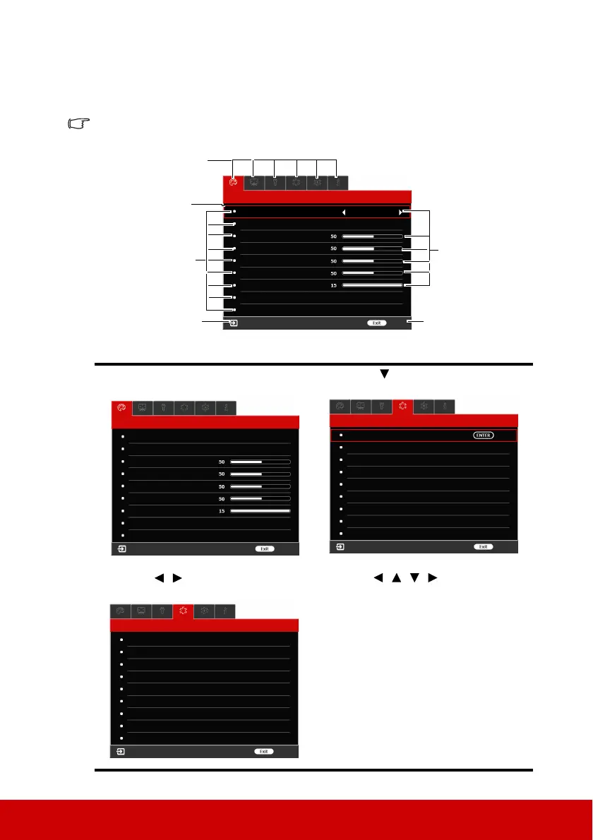 The projector is equipped with On-Screen Display (OSD) menus for making various