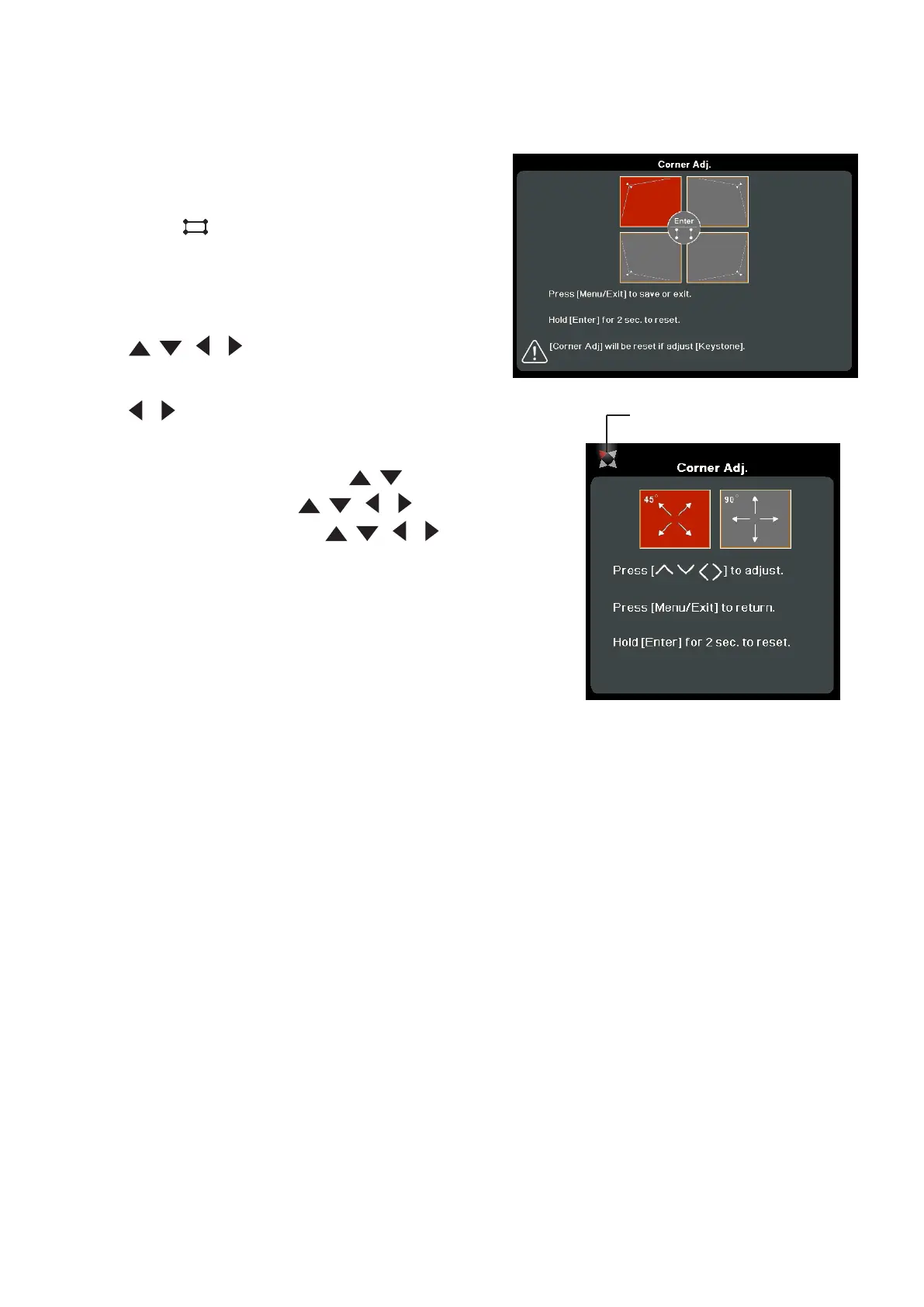Use / / / to select the corner you