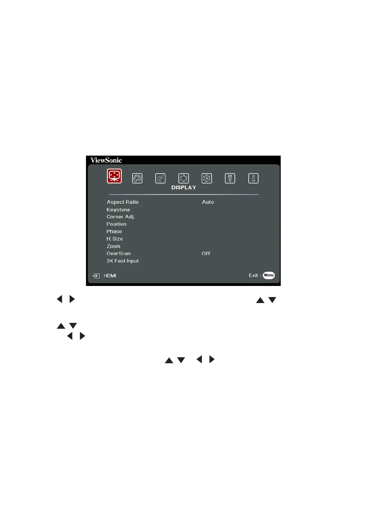 The projector is equipped with an On-Screen Display (OSD) Menu for making