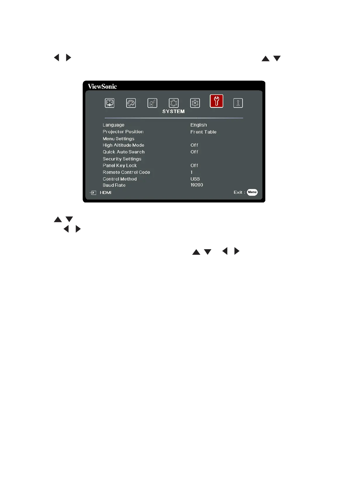 Press to select the menu opon. Then press to display its sub-menu,