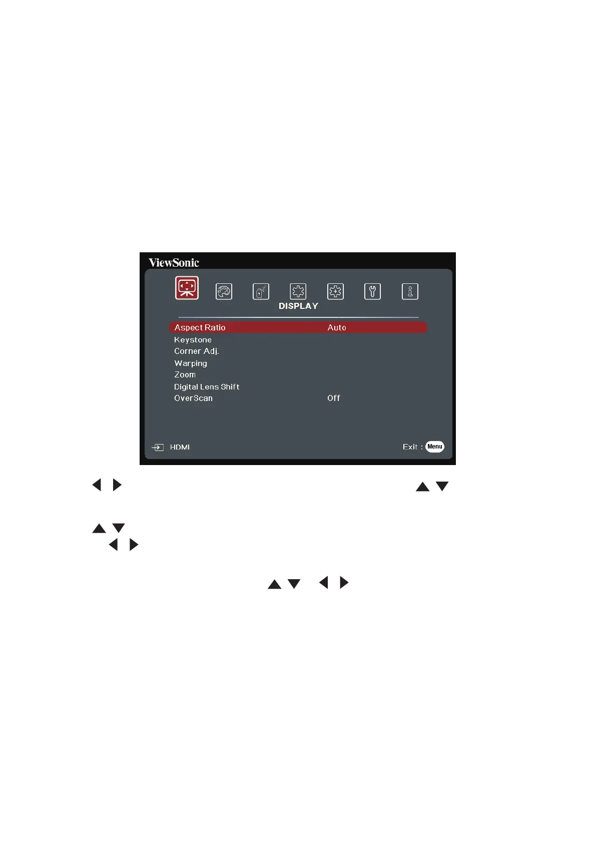 various adjustments. It can be accessed by pressing Menu on the projector or
