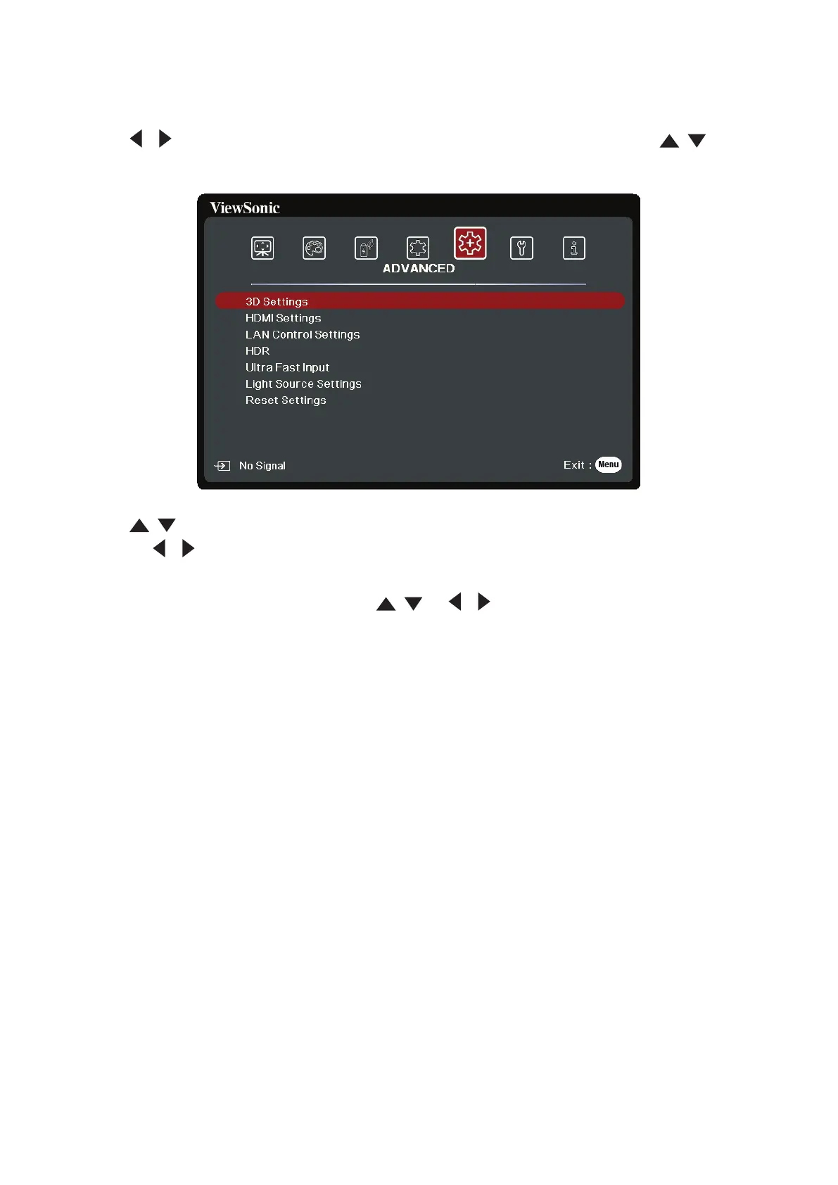 / to select the ADVANCED menu. Then press Enter or use / to
