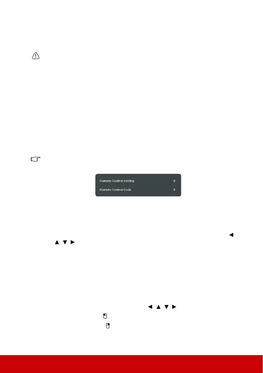 corresponding to the remote control code set in the projector OSD together for 5 seconds or