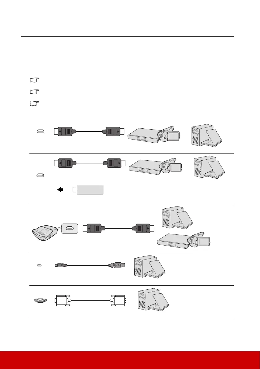 Below is the connection method for each connector that you may find on your projector.