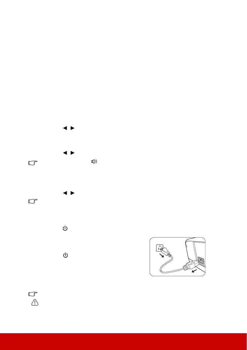 If available, you can press on the remote control to adjust the projector’s sound level.