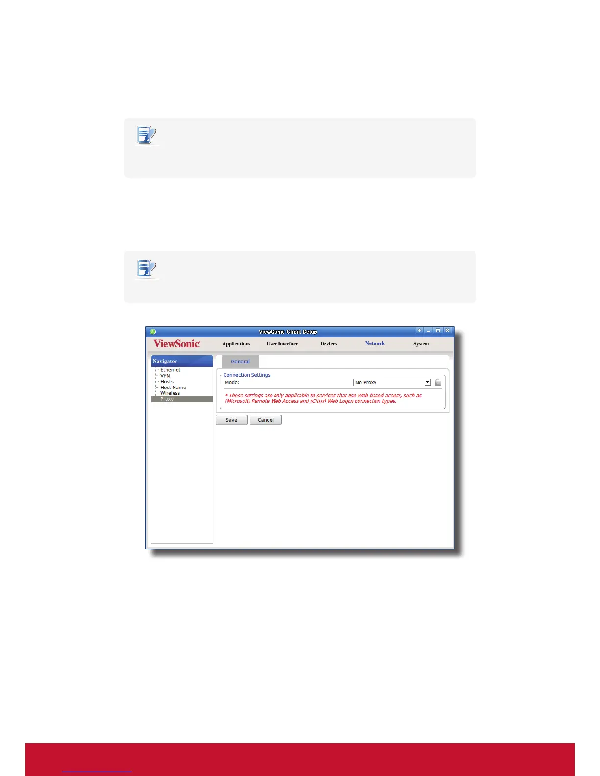 1. On ViewSonic Client Setup, click Network > Proxy.