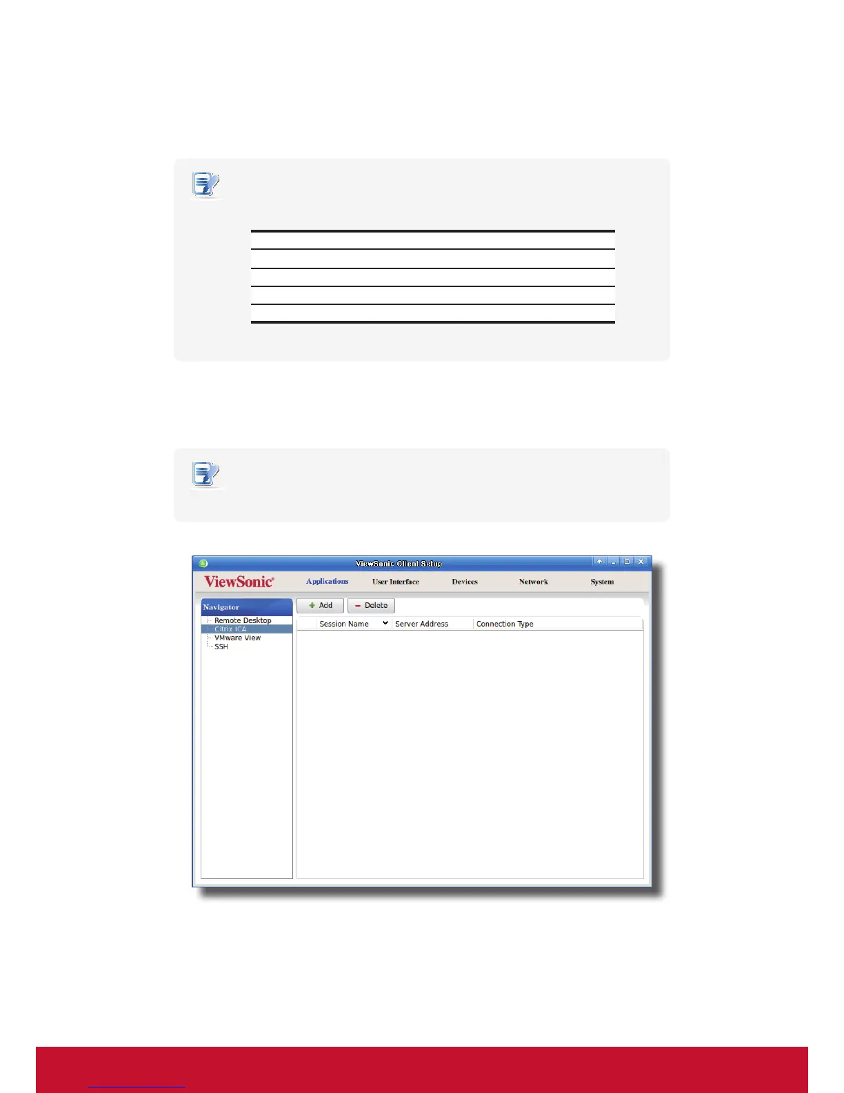 1. On ViewSonic Client Setup, click Applications > Citrix ICA.