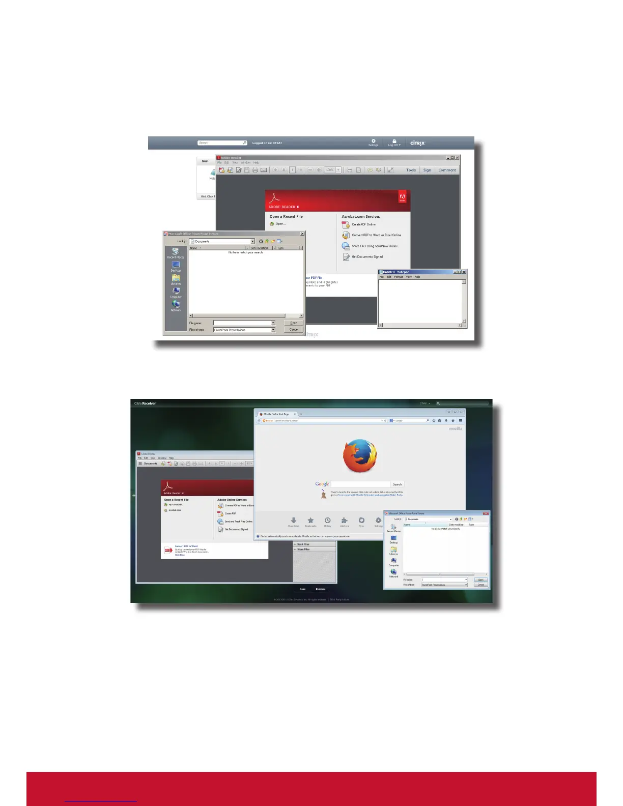 Adobe Reader, Mozilla Firefox, and PowerPoint Viewer