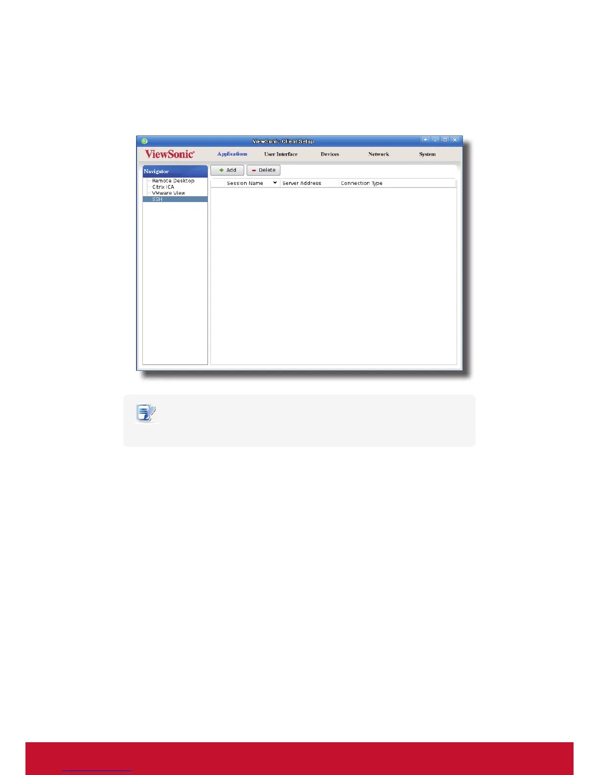 1. On ViewSonic Client Setup, click Applications > SSH.