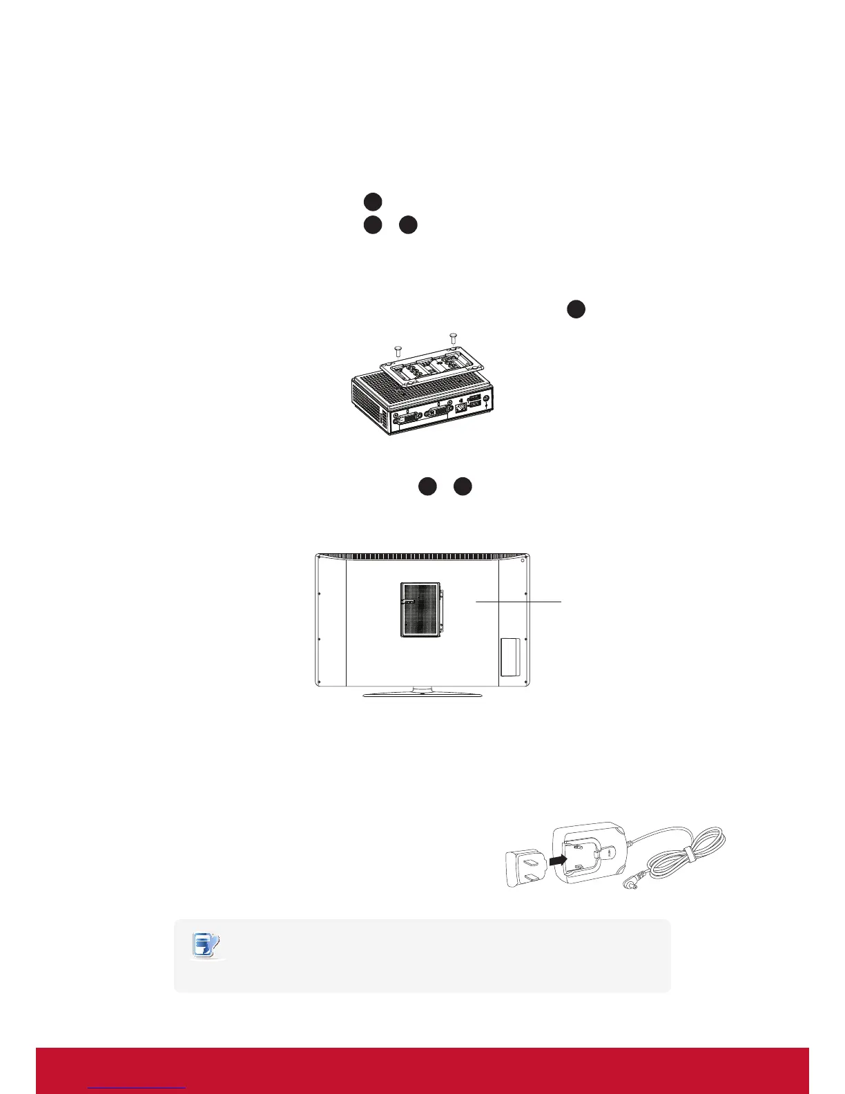 3. Refer to Step 2 to choose two of the four VESA mount holes on the bracket to align with two mount holes