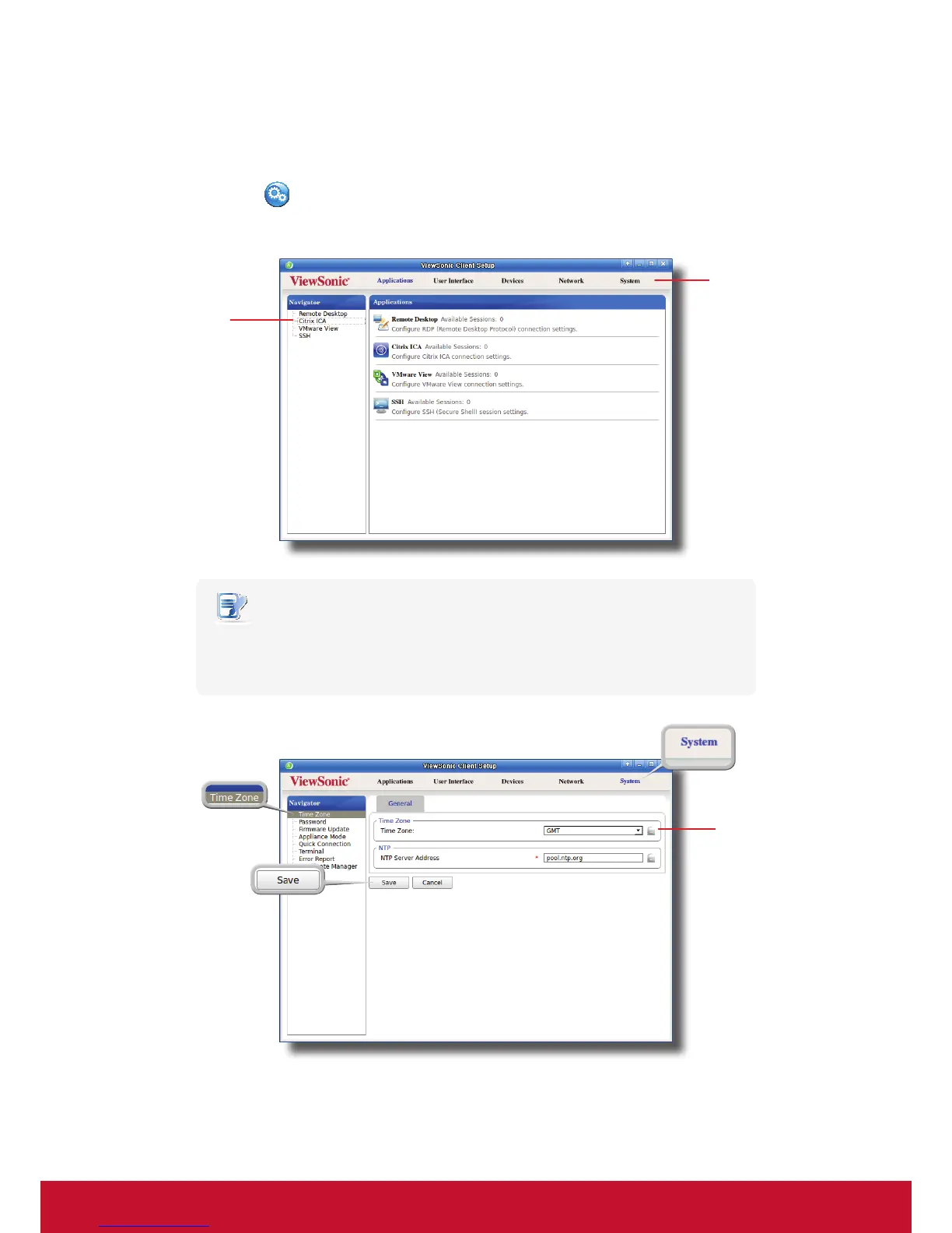 2. On ViewSonic Client Setup, click System > Time Zone.