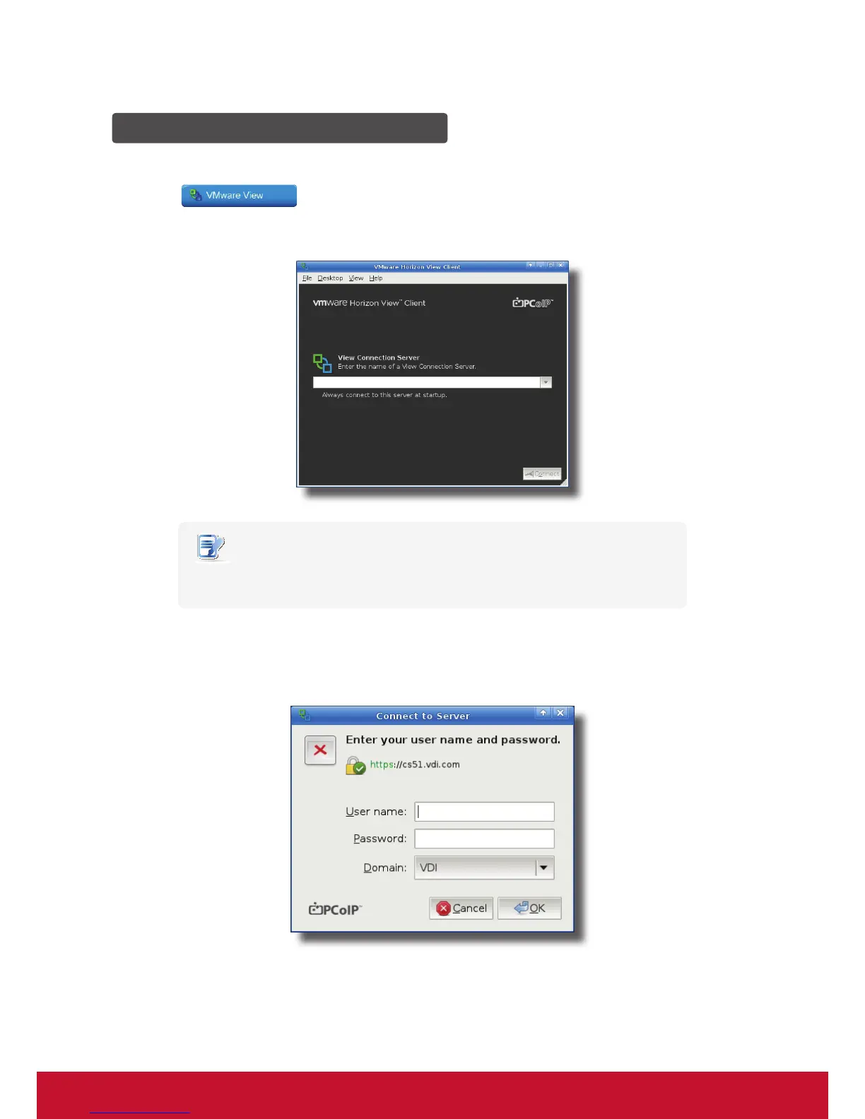 2. On the opened window, enter the IP address or computer name of the VMware View Connection Server, and