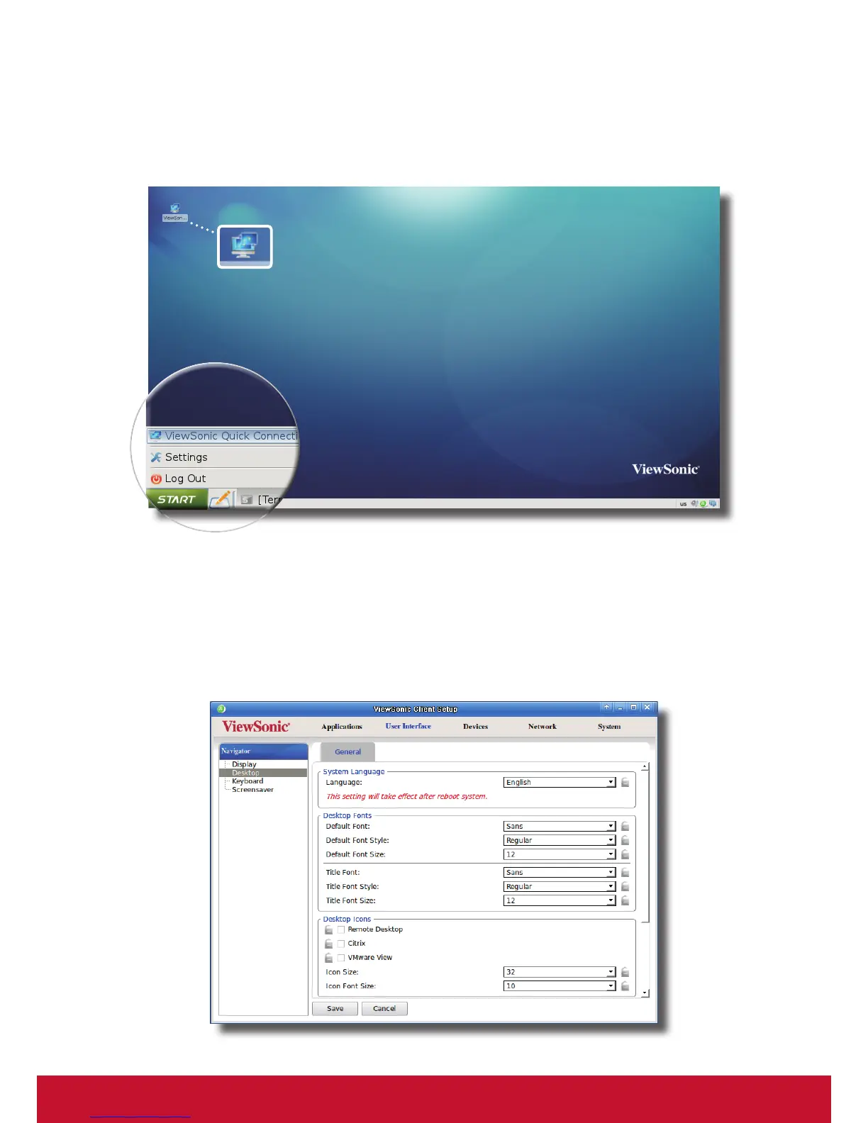 1. On ViewSonic Client Setup, click User Interface > Desktop.