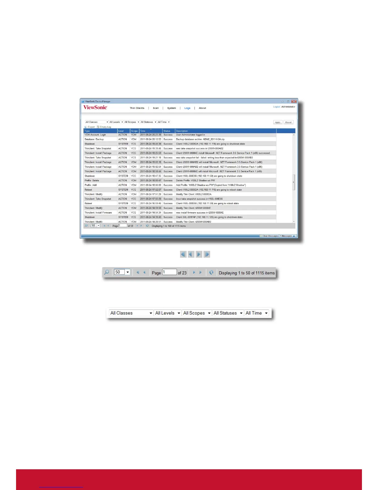 • To view log entries on dierent pages, click to change to the rst/previous/next/last page.
