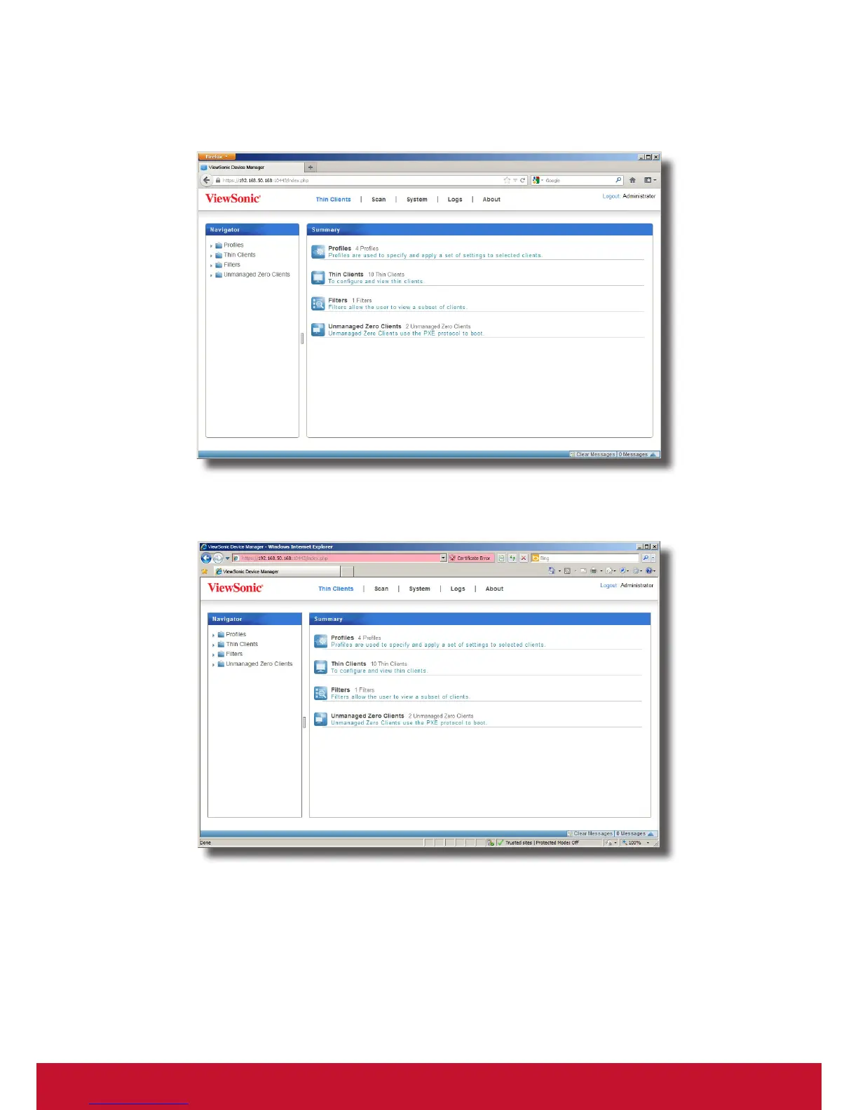 Start Page of ViewSonic Device Manager: Mozilla Firefox