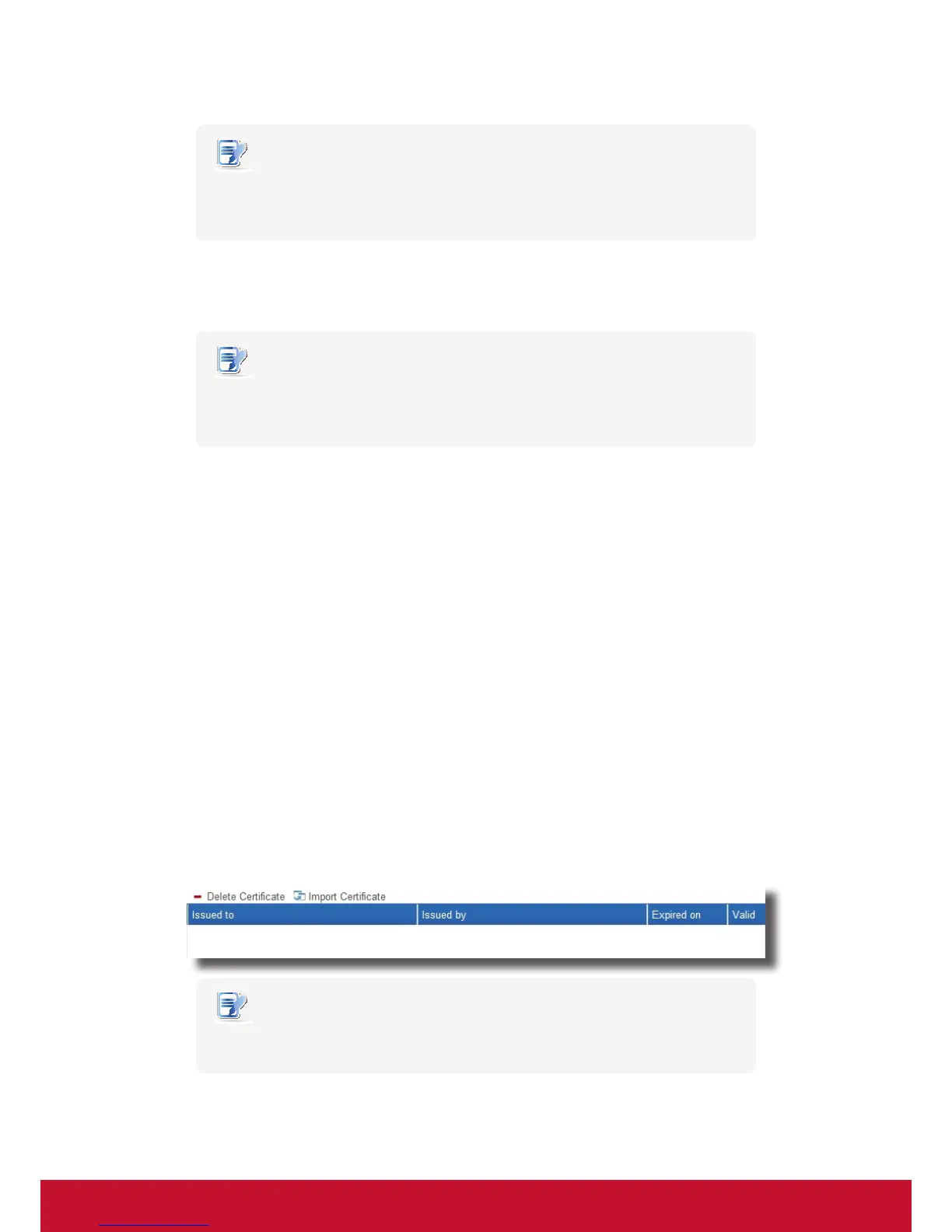 • If you never imported certicate les into ViewSonic Device Manager, the Certicate