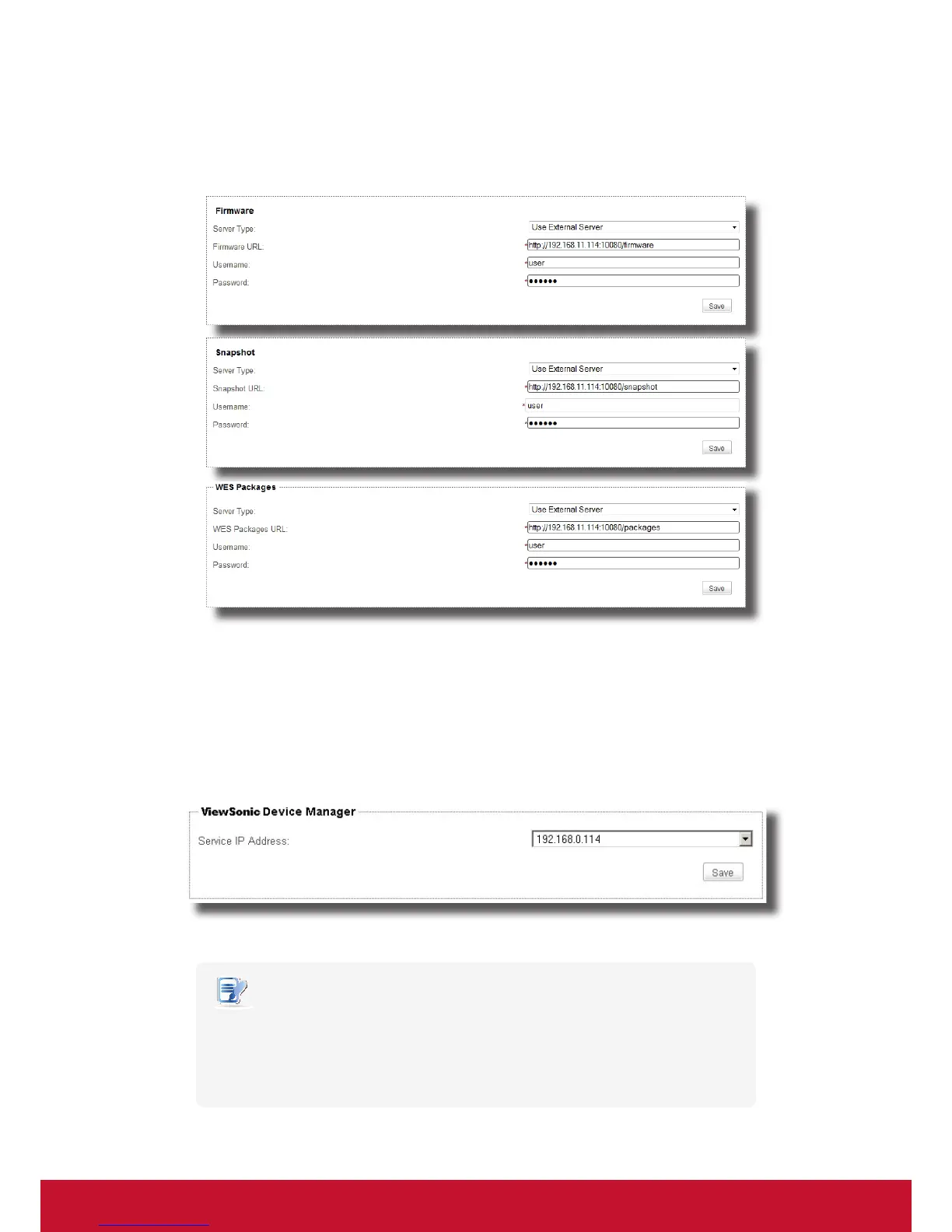 4. In Firmware/Snapshot/WES Packages URL eld, replace YourServerIP in the original URL with the IP address