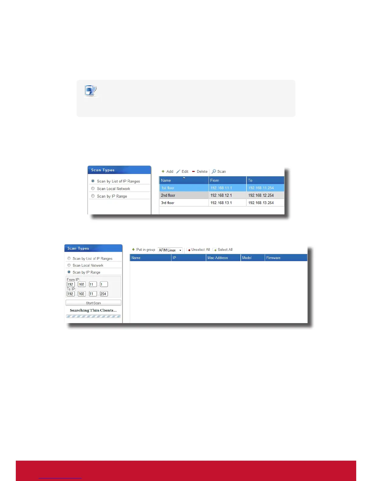4. While searching for thin clients, the selected IP range is shown on the right.