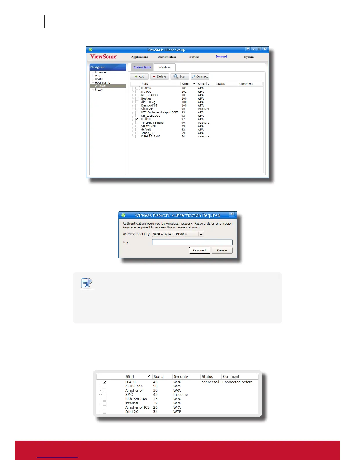 3. Click Connect to create a wireless network connection through the selected wireless network.