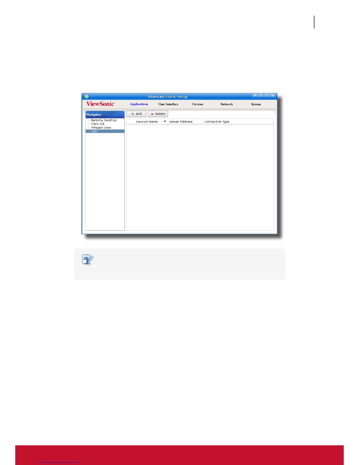 1. On ViewSonic Client Setup, click Applications > SSH.