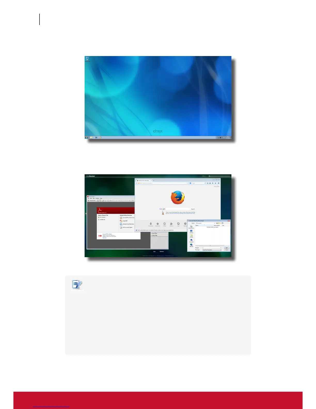 • Exiting a virtual desktop or application will return to the Desktop Selection or