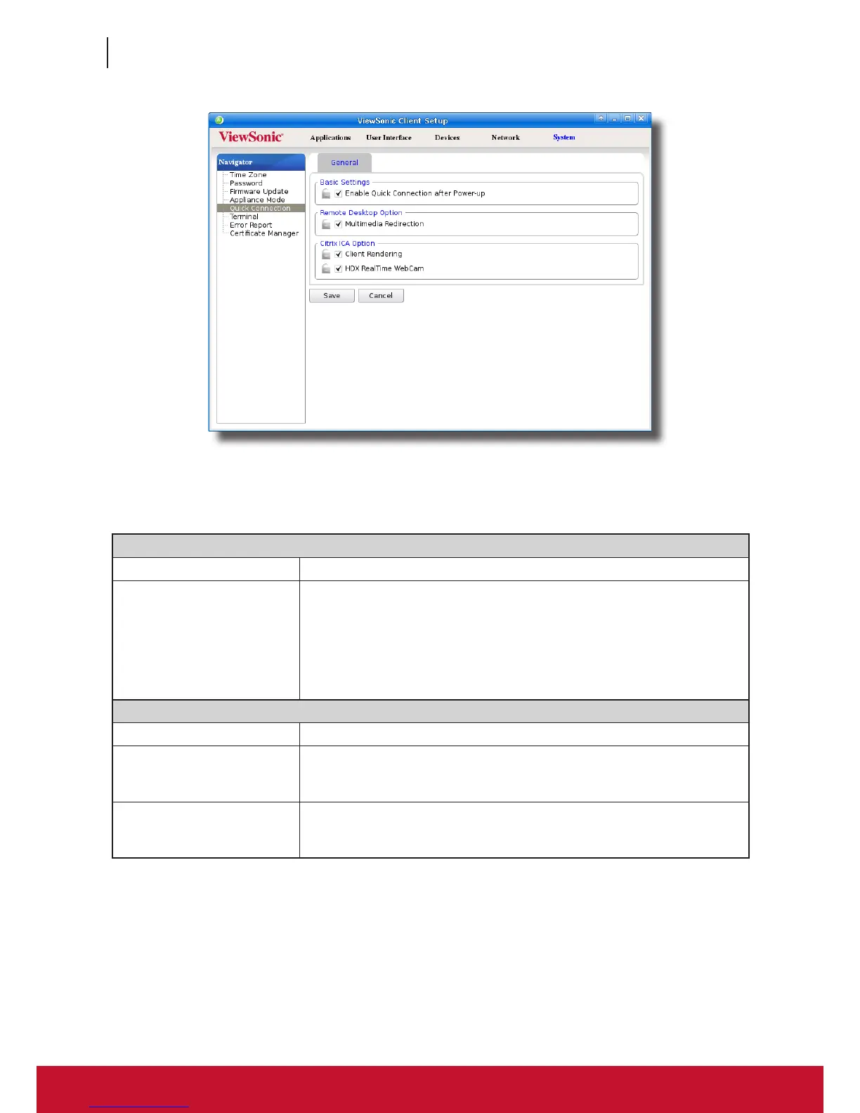mode, check/uncheck to enable/disable other options when in Quick Connection mode, and then click Save