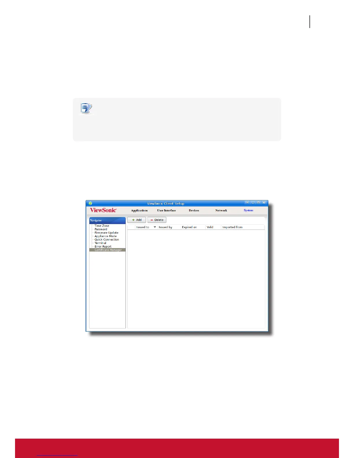 2. On ViewSonic Client Setup, click System > Certicate Manager.
