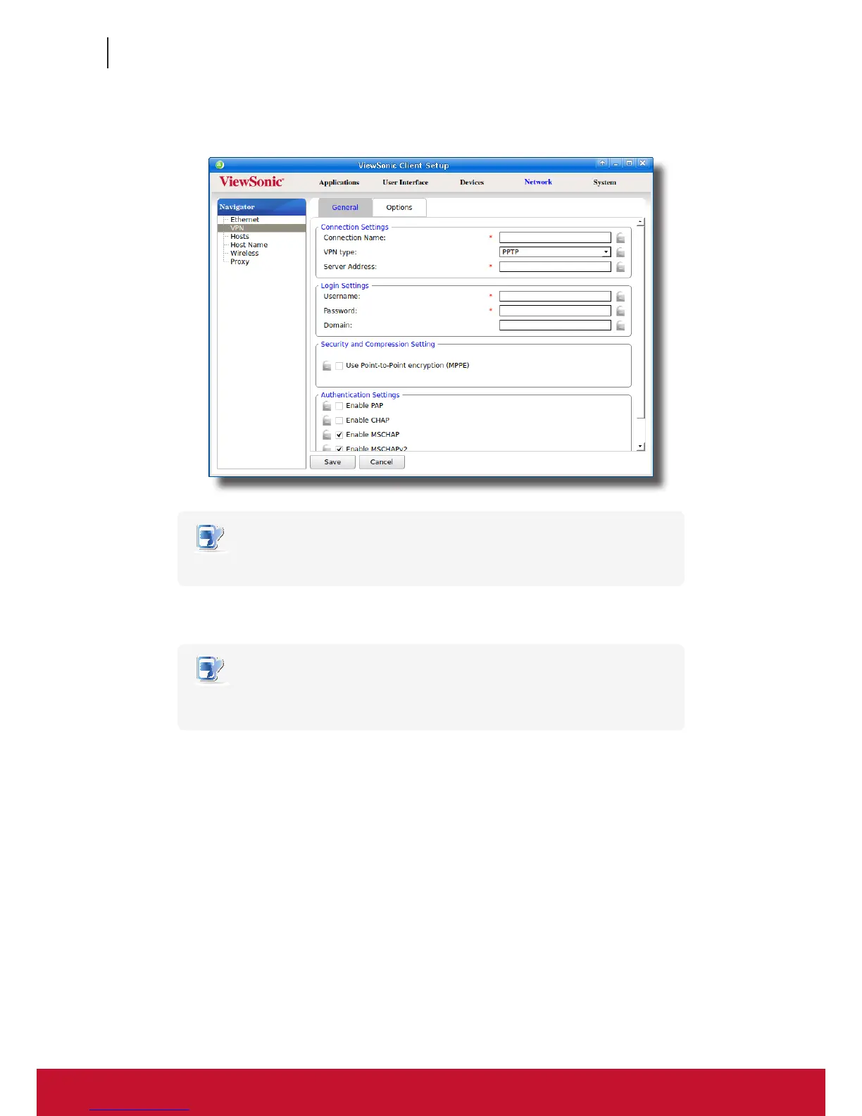 1. On ViewSonic Client Setup, click Network > VPN to open the Virtual Private Network list.