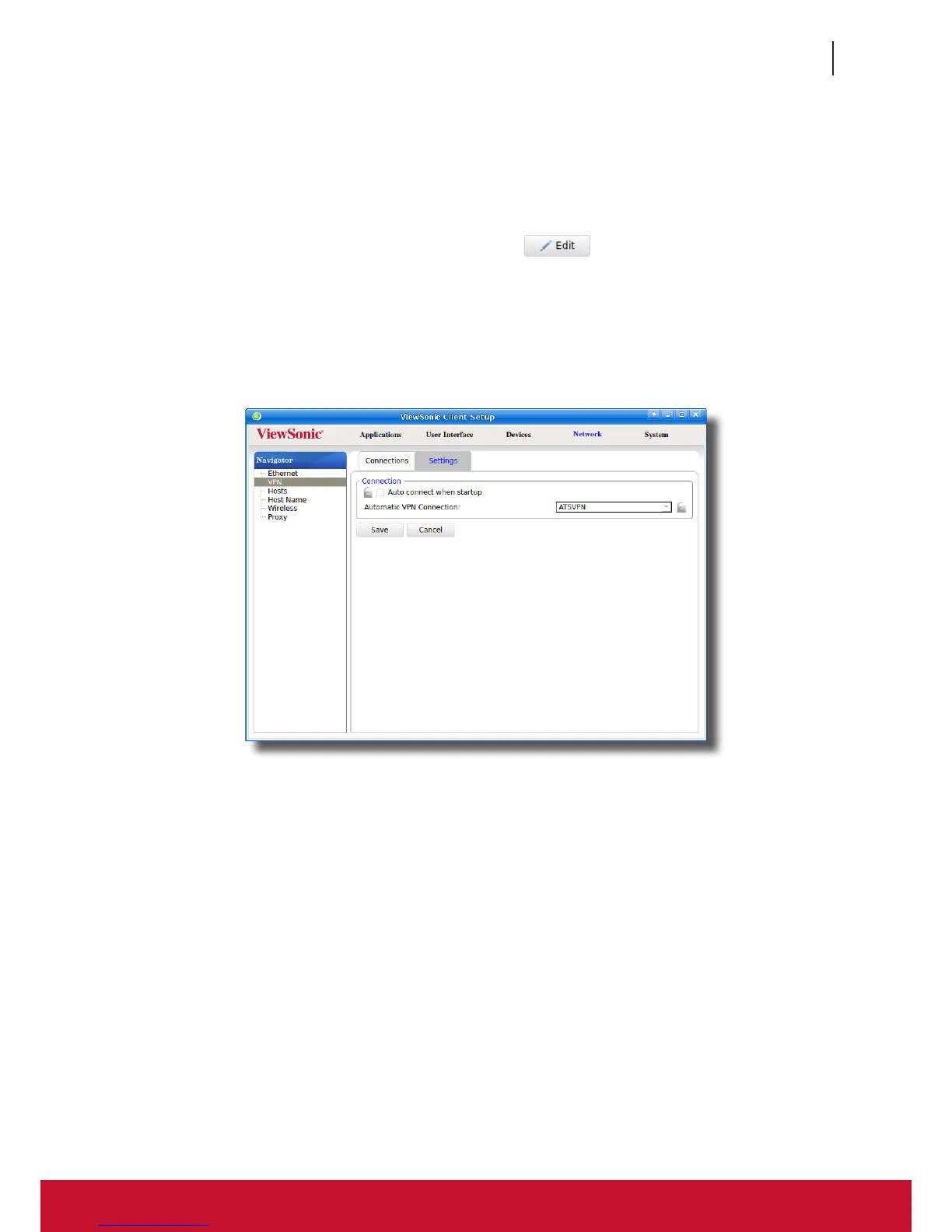 1. On ViewSonic Client Setup, click Network > VPN, and then click Settings sub-tab.