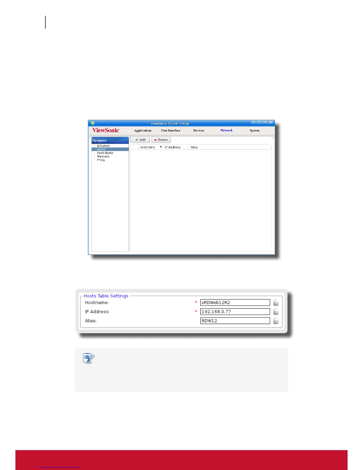 ViewSonic Client Setup allows you to use the name or alias of a host server instead of its IP address wherever you