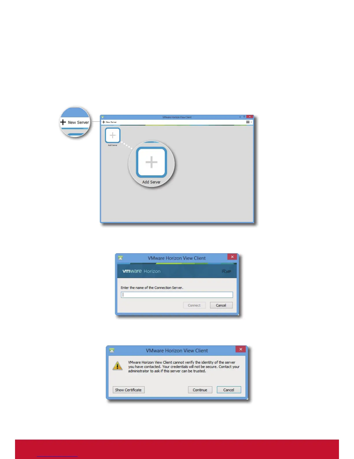 4. A window appears prompting for the name or IP address of the View Connection Server. Enter the required