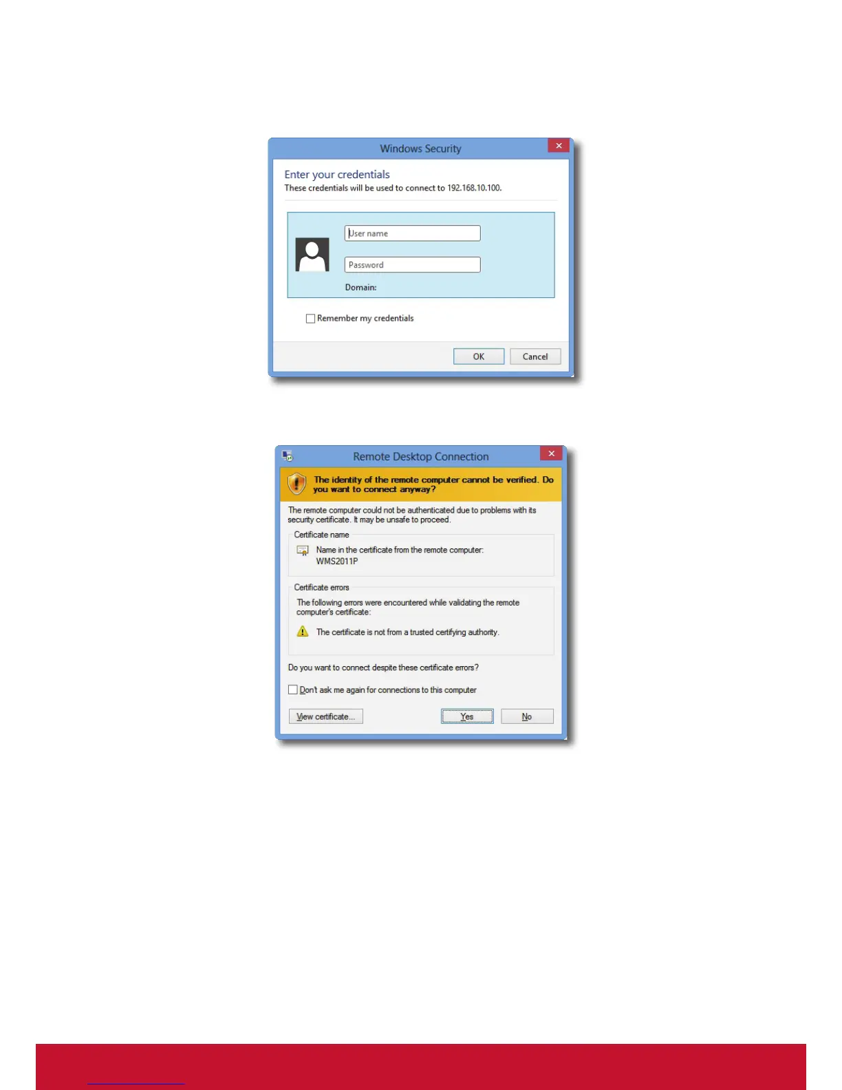 4. A window may appear with a certicate message about the remote computer. Consult your IT administrator