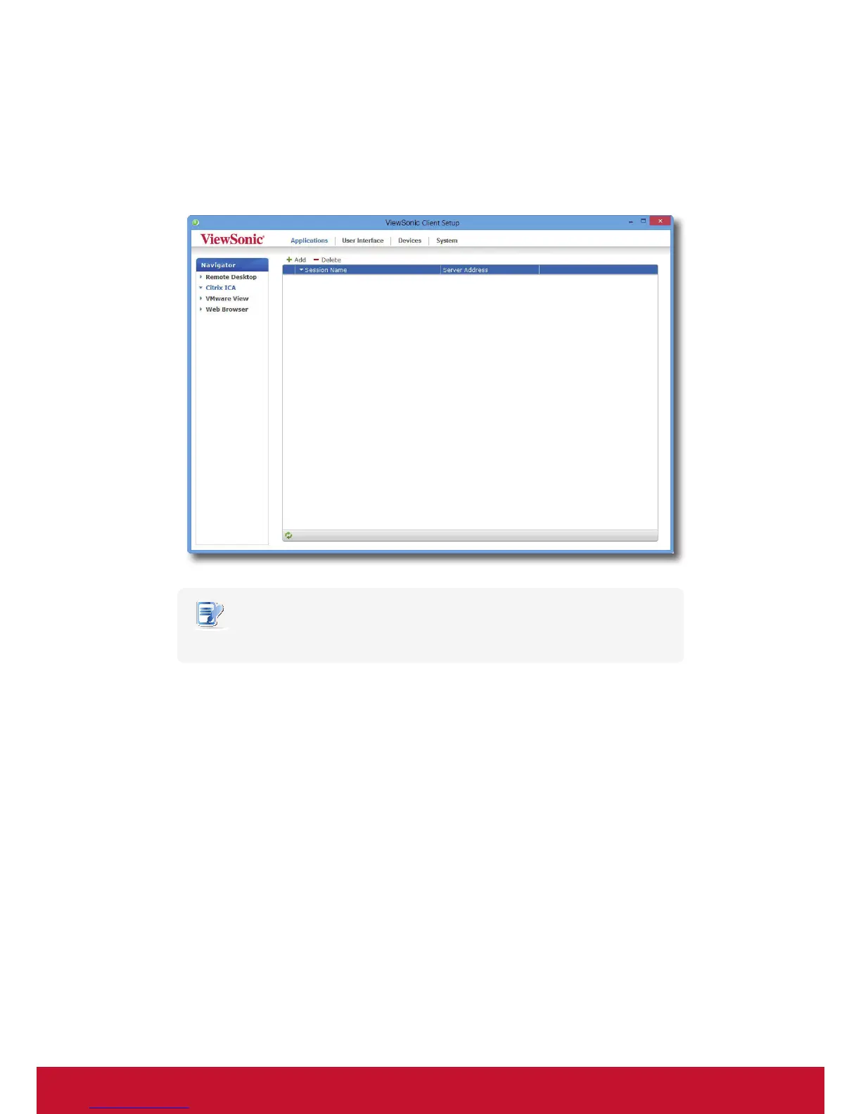 1. On ViewSonic Client Setup, click Applications > Citrix ICA.