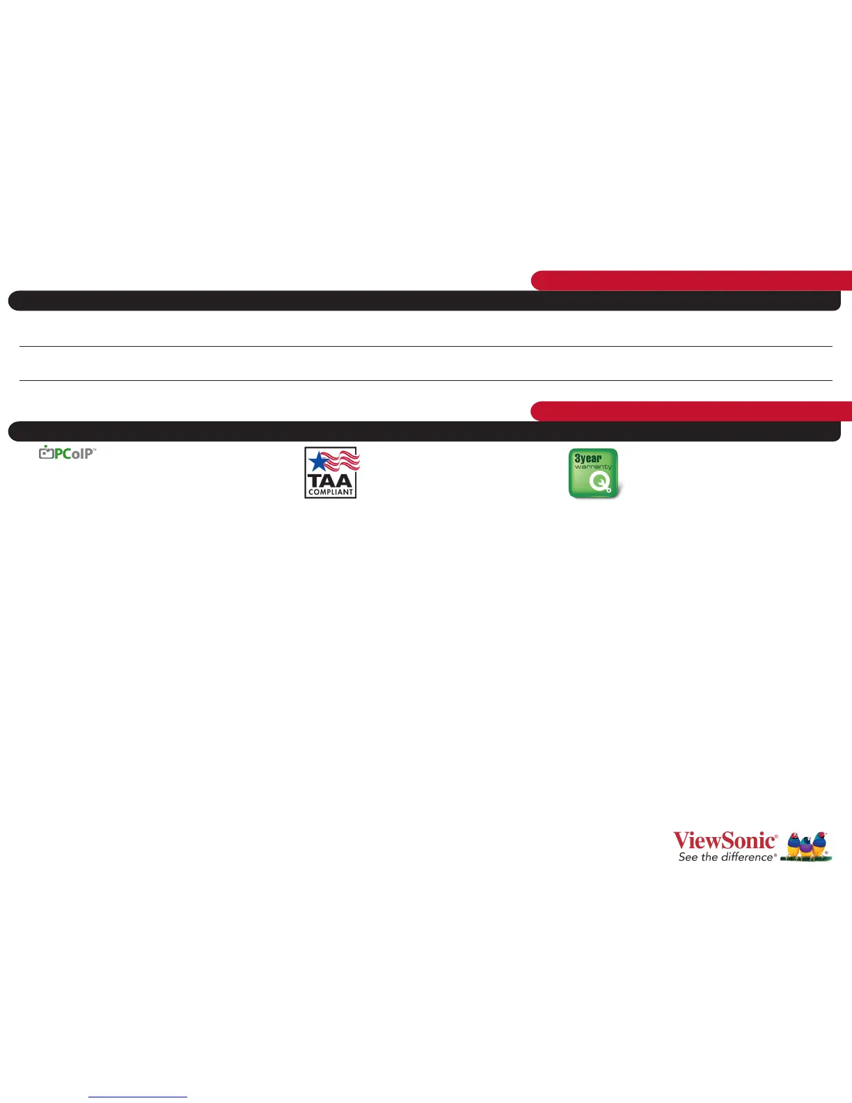 For the most current product accessories and specications, visit ViewSonic.com. Specications and availability subject to change without notice. Selection, offers and programs may vary by country; see your ViewSonic representative for complete details. VMware and
