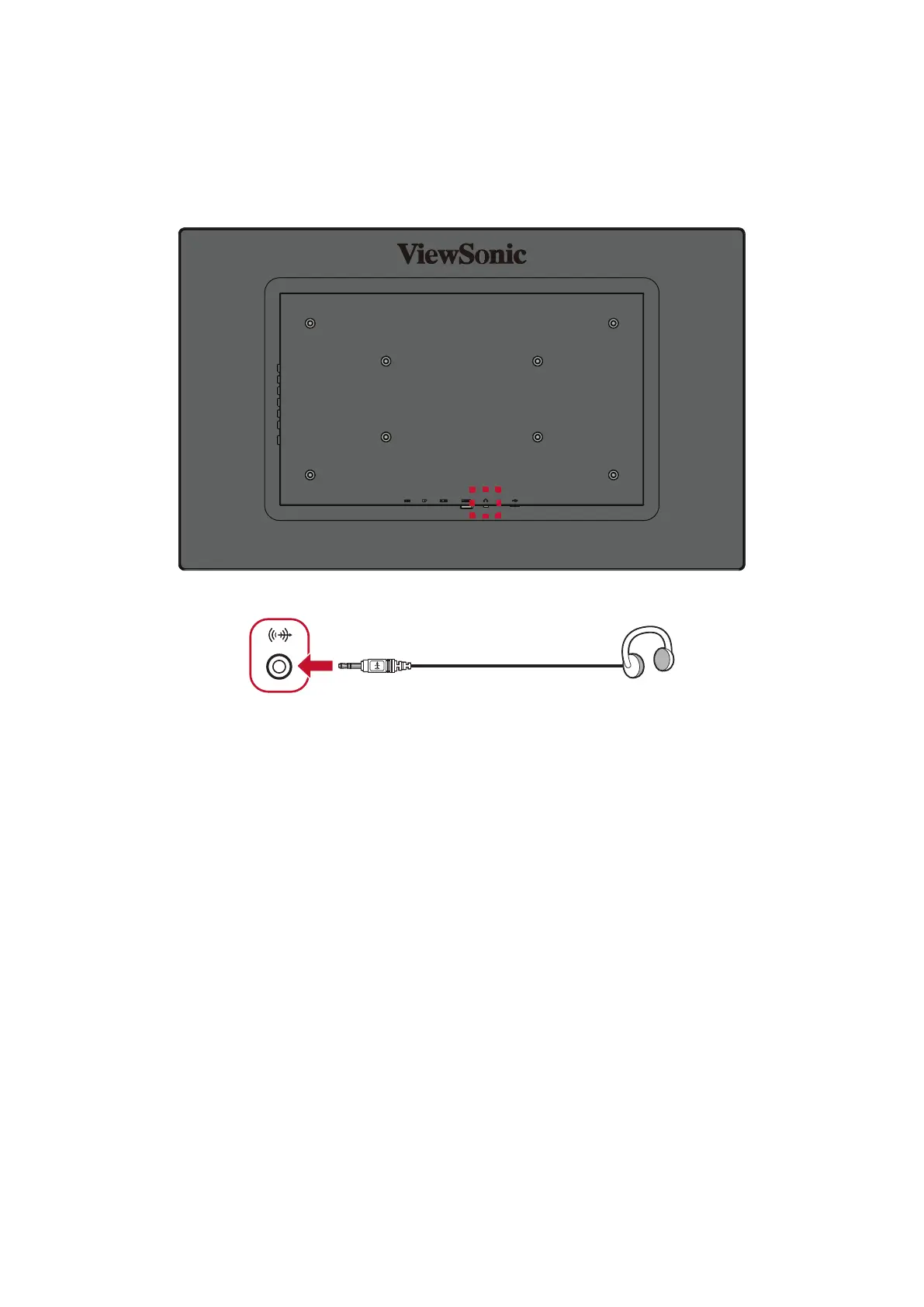 Plug an audio cable into the Audio Out port of the monitor. Plug the other end into
